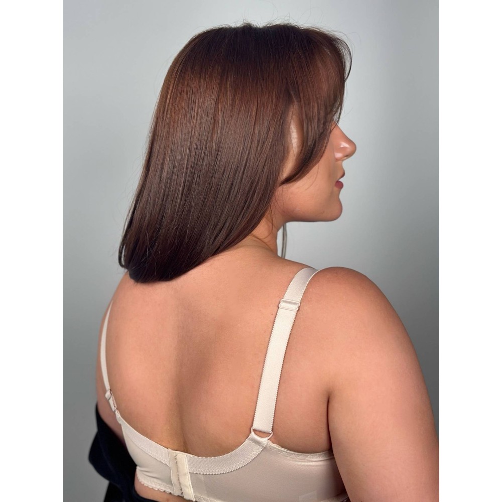 - Застежка: Классическая задняя застежка на 3 крючках для точной подгонки по объему