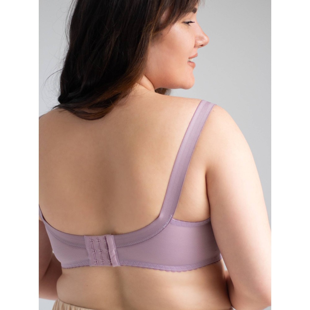 Мягкий бюстгальтер без косточек Nana - утонченная модель большого размера от латвийского производителя, выполненная в нежном светло-сиреневом оттенке. Мягкие чашки без косточек с хлопковой подкладкой обеспечивают максимальный комфорт в течение всего дня.