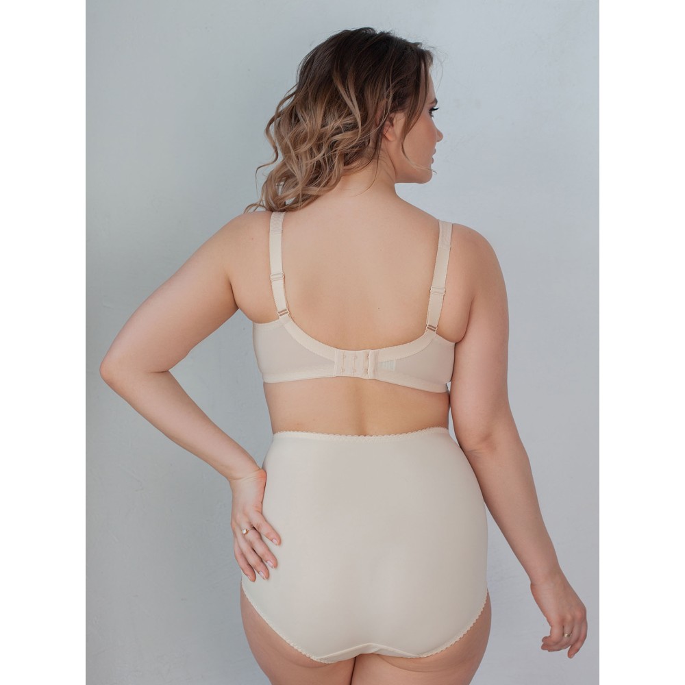 Бюстгальтер Glora без кісточок виконаний із високоякісного еластичного полотна бежевого кольору. Модель відрізняється особливою конструкцією чашок з діагональними та Т-подібними швами, які забезпечують ідеальну підтримку та форму грудей.