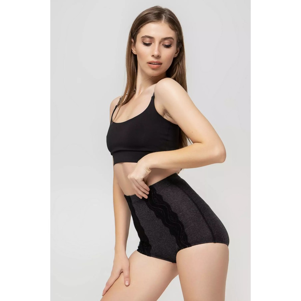 Крій трусиків зручний та практичний на зиму. Висока посадка дбайливо захищатиме поперек. М’яка гумка, що не здавлює. Ластівка подвійна з Х/Б матеріалу. На рельєфних швах розташоване елегантне мереживо. Весь виріб виконаний у технології “плоский шов”, ці шви не натирають шкіру.