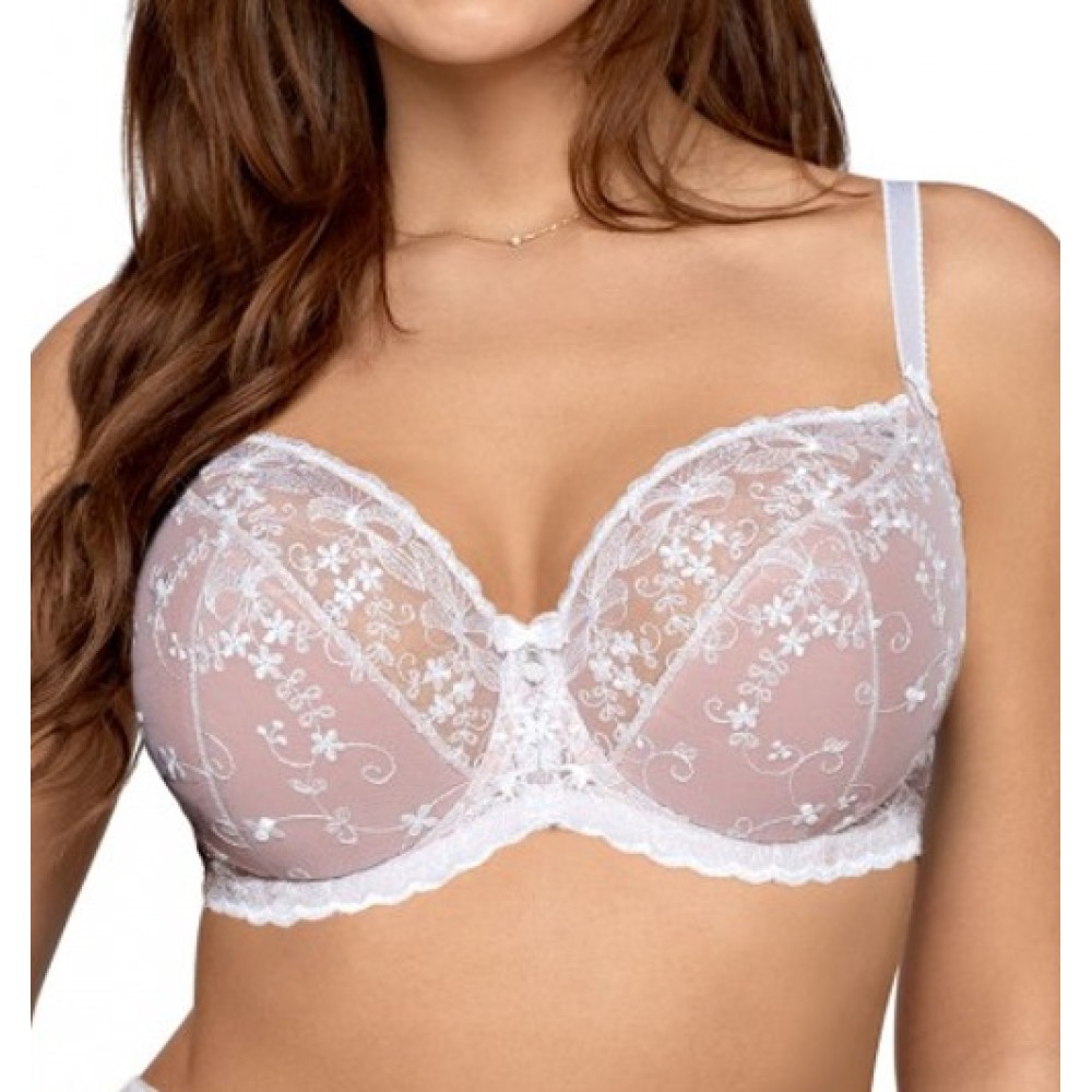 Бюстгальтер з напівпідкладкою, декорований красивою, вишитою сіточкою. Бретелі не знімаються. Боковини укріплені вертикальними кісточками. Ідеально підтримує бюст і ніжно округлює його, створюючи привабливе декольте.