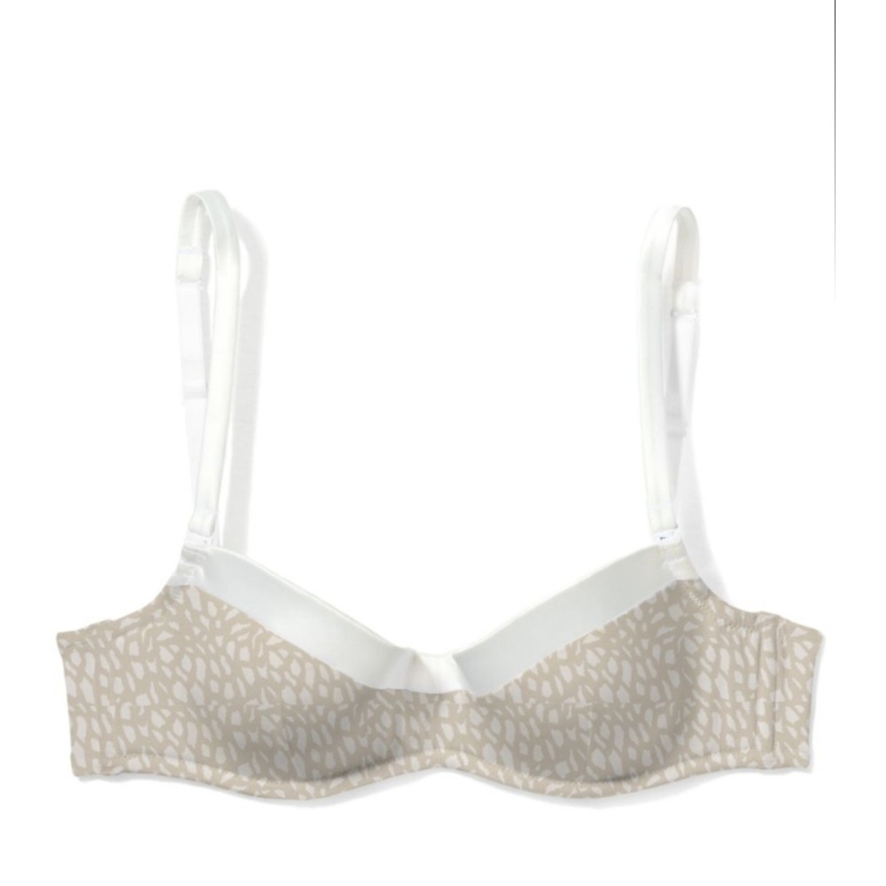 Бюстгальтер торгової марки Atlantic на тонкому поролоні типу балконет виконаний з якісної мікрофібри типу атлас кольору екрі в абстрактний принт світло-бежевого кольору;