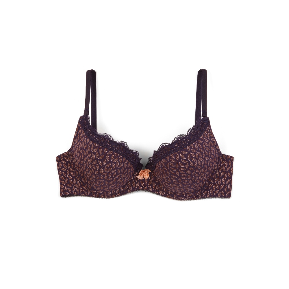Бюстгальтер торгової марки Atlantic зі знімним пуш-апом виконаний з якісної бавовни темно-синього кольору в абстрактний принт у вигляді віял персикового кольору;