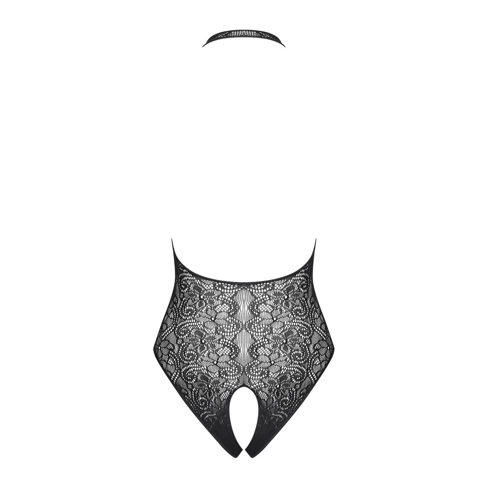 Вязаное боди смелого сексуального кроя. Сексуальный вырез спереди, имитирующий шнуровку, безусловно, очень интригующий и пикантный элемент. Открытая спина гарантирует чувственный вид, а открытая промежность способствует наслаждению. Узнайте больше: черное боди с нежным цветочным узором, ремешок на шее – открытая спинка, имитация шнуровки спереди – интригующий вид, открытая промежность – пикантный элемент, эластичная и идеально сидящая ткань.