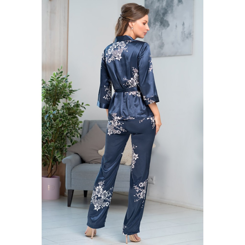 Комплект-трійка Mia-Amore складається з жакета на ґудзиках, брюк і топа на тонких бретелях, виконаний з принтованого смесового полотна. По центру топа милий бантик з підвіскою.Склад 70% натуральний шовк, 25% поліестер, 5% еластан
