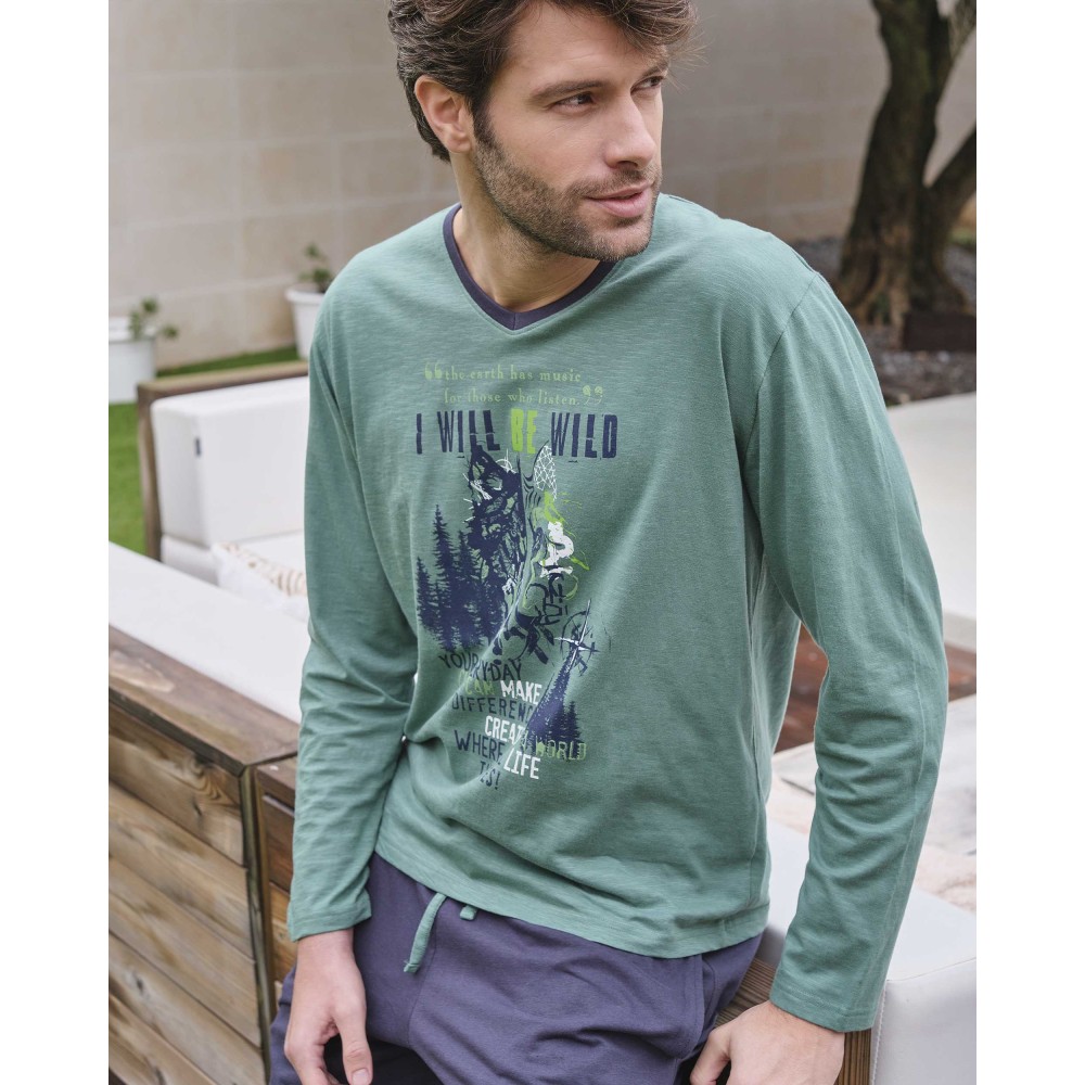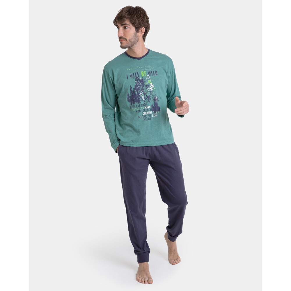 Чоловіча піжамазі штанами Massana P731328 з натуральної бавовни. Комплект складається з кофтиз довгим рукавом та штанів прямого крою з бічними кишенями.Склад: 100% бавовна.