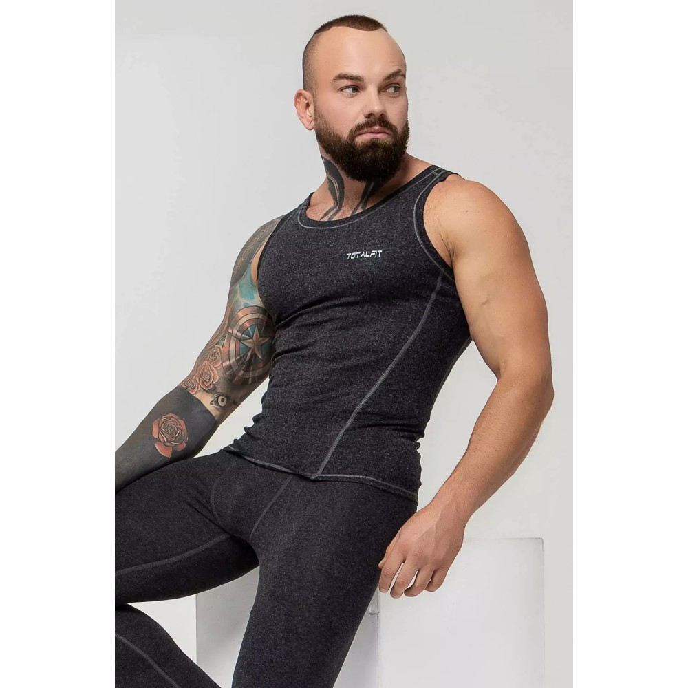Термомайки TotalFit виготовлені з інноваційного італійського матеріалу «Термобіфлекс», що надає їм ряд унікальних переваг. Вони відрізняються високою міцністю, еластичністю та здатністю ефективно регулювати температуру тіла. Матеріал щільно прилягає до шкіри, абсорбує піт і виводить його назовні, залишаючись при цьому «невагомим» і захищеним від вологи та бактерій. Особлива гладкість і шовковистість роблять носіння неймовірно комфортним, а стійкість форми — гарантують ідеальний вигляд надовго. Враховуючи стильний дизайн, ці майки є універсальним рішенням не тільки для спортивного залу, але й для повсякденного використання як елемент базового гардеробу, будучи абсолютно непомітними під будь-яким одягом.