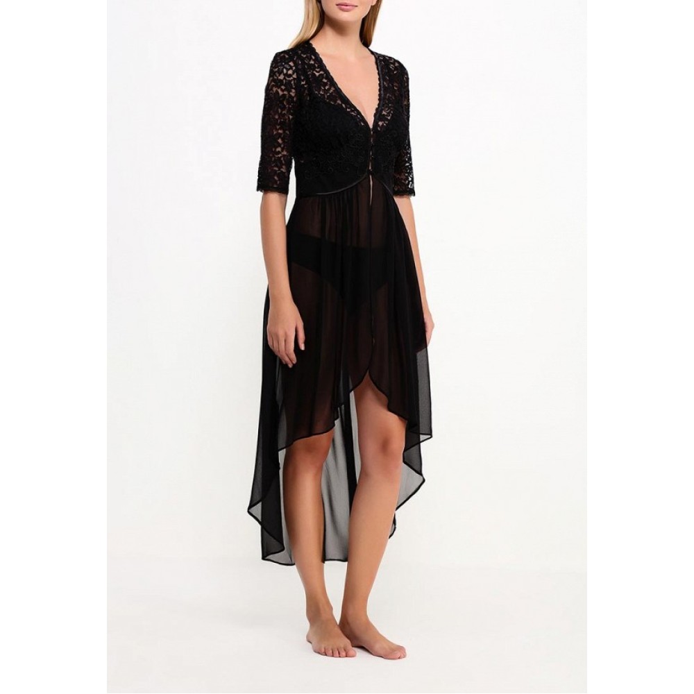 Довгий пеньюар "Венера" ​​17307 Міа Міа прилеглого силуету з тонкого шифону та мереживного полотна з еластаном. Модель отрезная під грудьми (з м'якою драпіруванням). Верхня частина сорочки і рукава виконані з мереживного полотна. Фігурна кокетка виконанню з шифону, з настрочені фігурним мереживом в колір. Застібається, на навісні петлі і декоративні ґудзики, на поличці. Нижня частина пеньюара виконана з шифону із збіркою. За рахунок розкрою вигляді полусолнце створюється обсяг і легкість моделі. Склад: 100% поліестер.