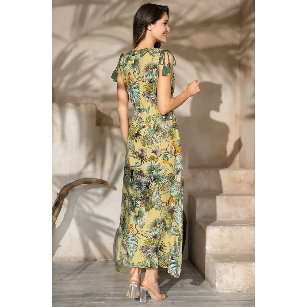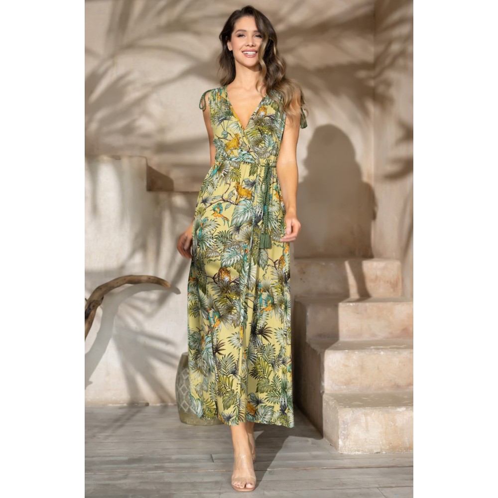 Довгий сарафан Сафарі 1808 від Mia-Amore з регульованоюшириною плеча та лінією талії. Виріб виконаний із тканої принтованої віскози. Убічних швах оброблено кишені.Склад: 100% віскоза.