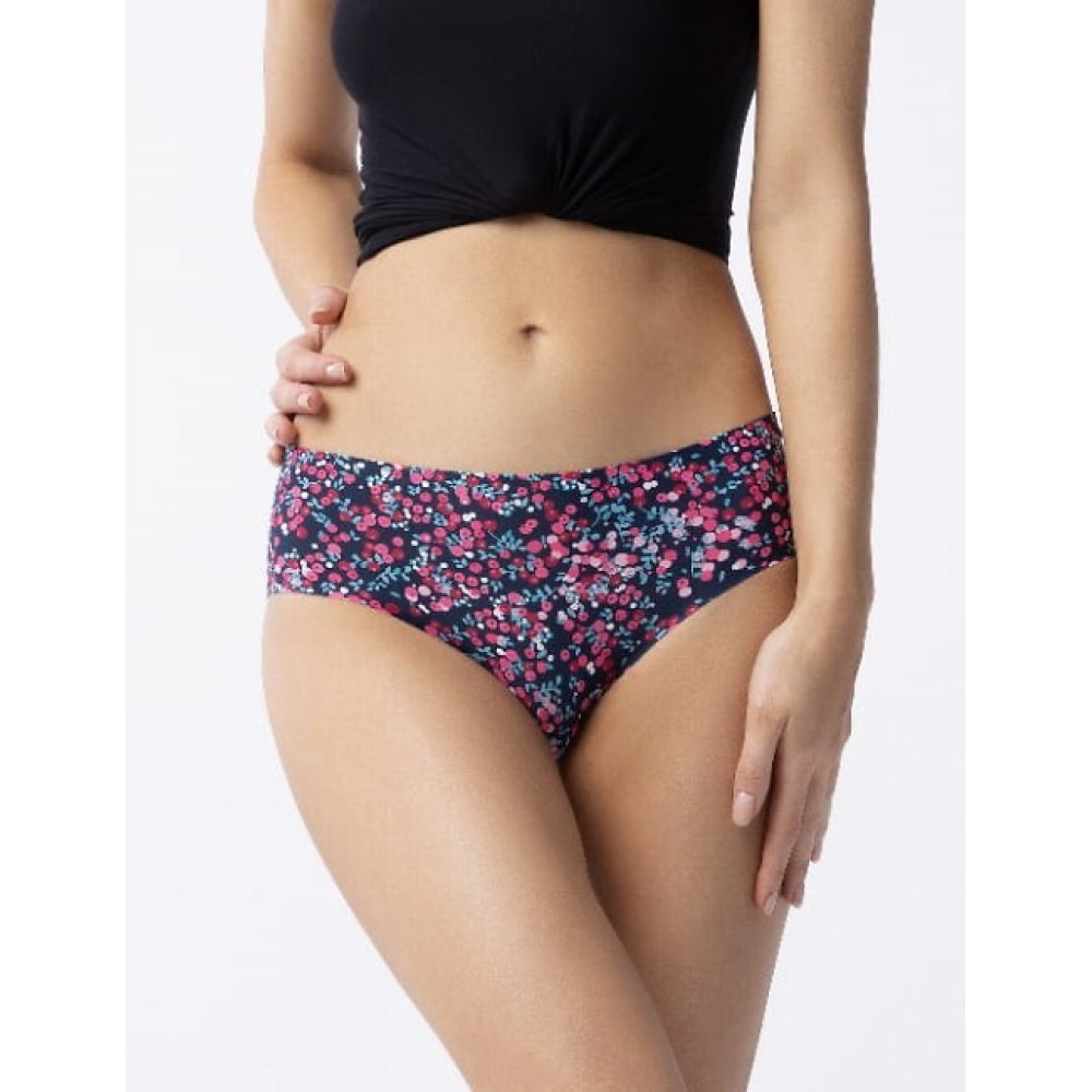 Женские трусы классического кроя, украшенные ярким узором. Лазерная резка, бесшовная отделка. Упакован в декоративную коробку. Состав: 89 % полиамид, 10 % эластан, 1 % хлопок.