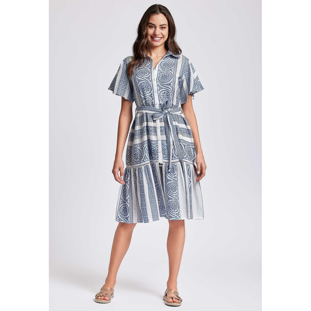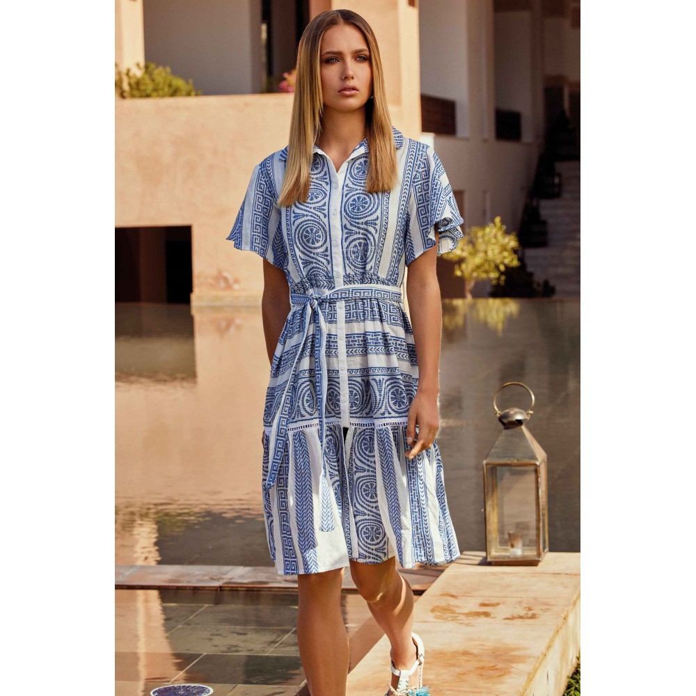Жіноча літнясукня David DB24-036 з бавовни, яка втілює елегантність і свіжість. Сукня зкоротким рукавом і застібається на гудзики. Традиційний комір сорочкового типу,у комплекті є пояс. Склад: 100% бавовна.
