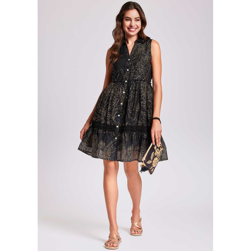 Жіноча літня сукня David DB24-098 з некупольної бавовни,вище колін. Сукня без рукавів, застібається на гудзики.Склад: Бавовна 100%