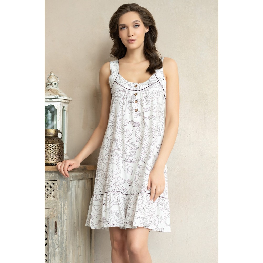 Рубашка до колін Челсі 1780 від Mia-Amore з широкими і зручними плічками виконана з принтованной віскози. Ліф декорований застібкою з декоративними гудзиками. Горловина та низ прикрашені контрастним кантиком. По низу сорочки волан із легкою збіркою.Склад: 100% віскоза