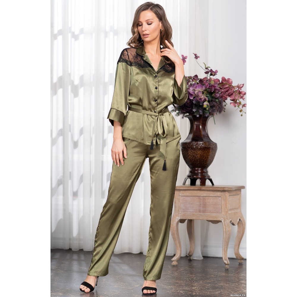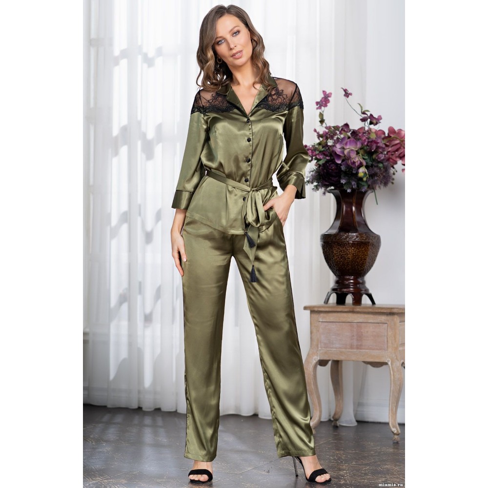 Жіноча піжама з брюками шовковаОлівія 3646