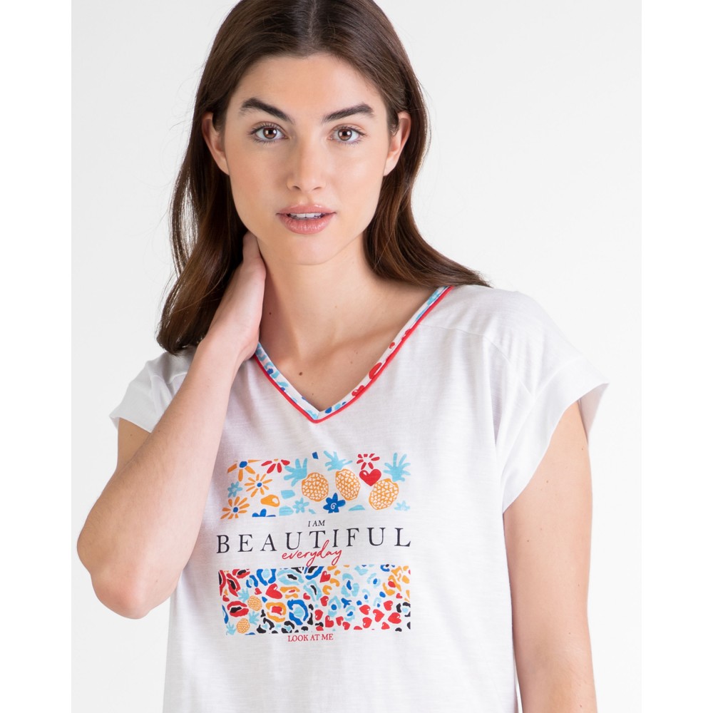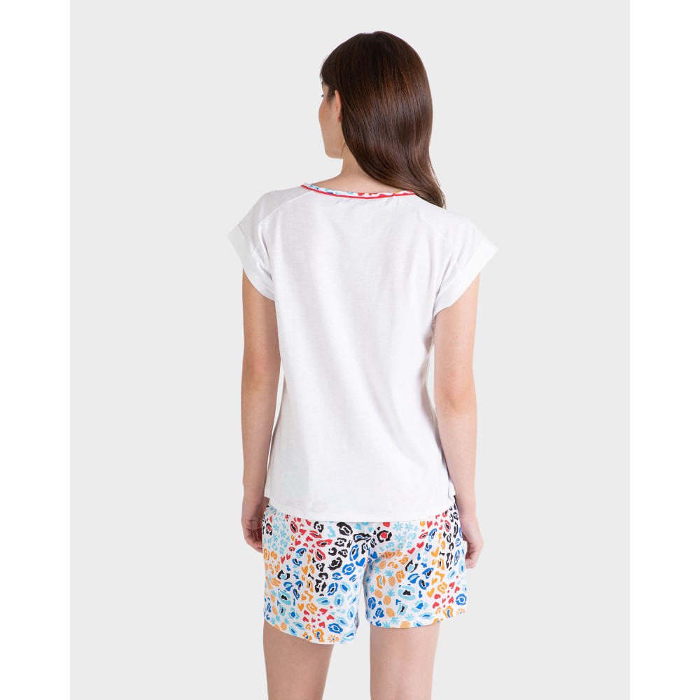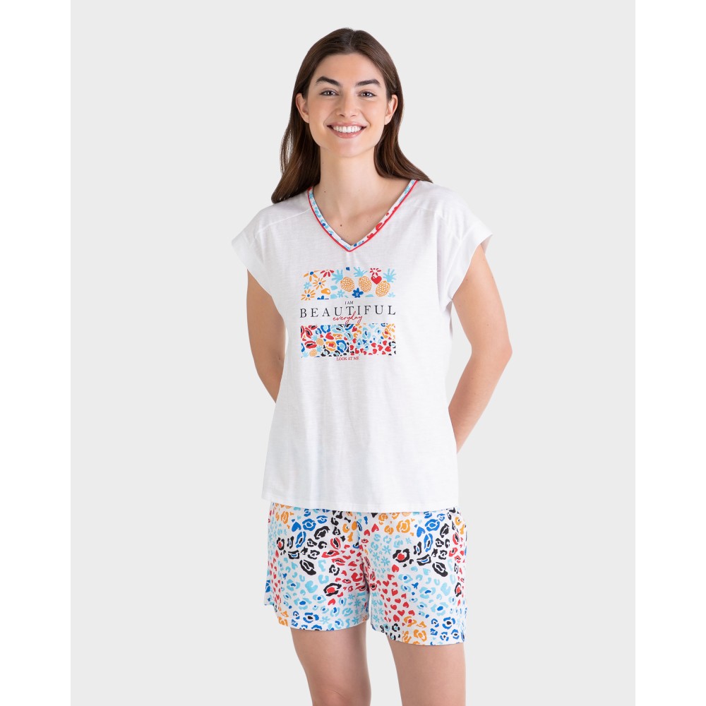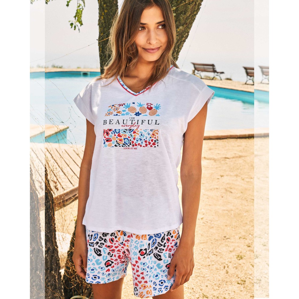 Жіноча піжамаMassana P231245 зі 100% бавовни, що складається з футболки з короткими рукавамита V-подібним вирізом. Шорти з кольоровим тваринним принтом та регульованоюталією.Склад: 100%бавовна.