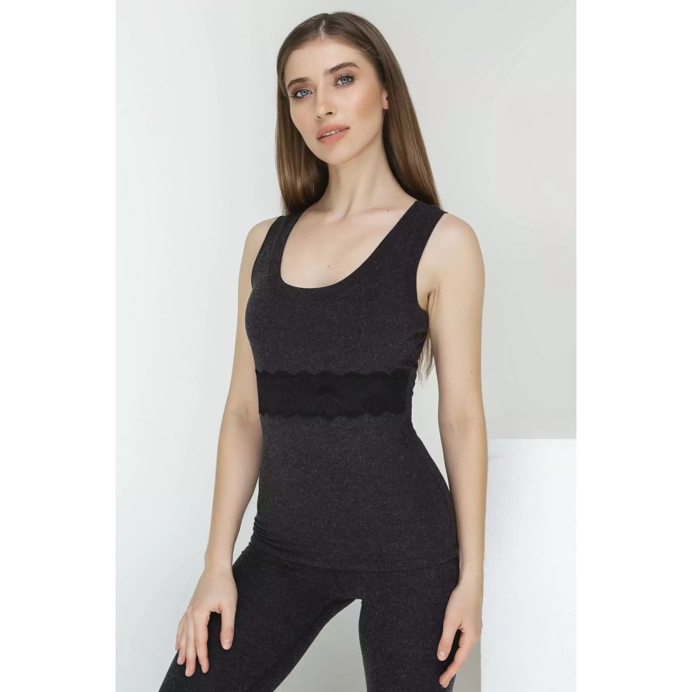 Крій майки класичний, має гарну посадку, завдяки чому не приноситиме дискомфорт. На майці розташоване елегантне мереживо, яке підкреслюватиме талію.