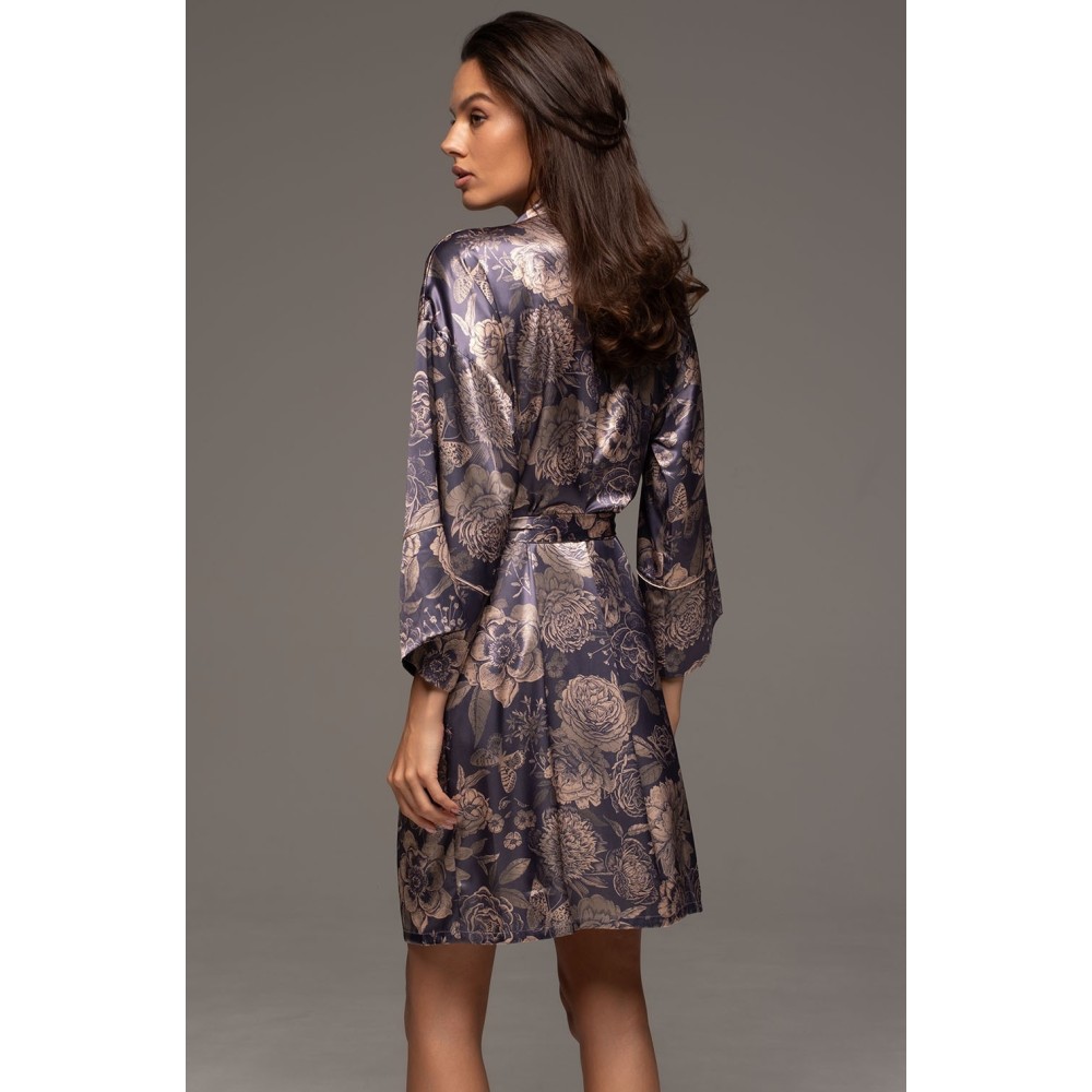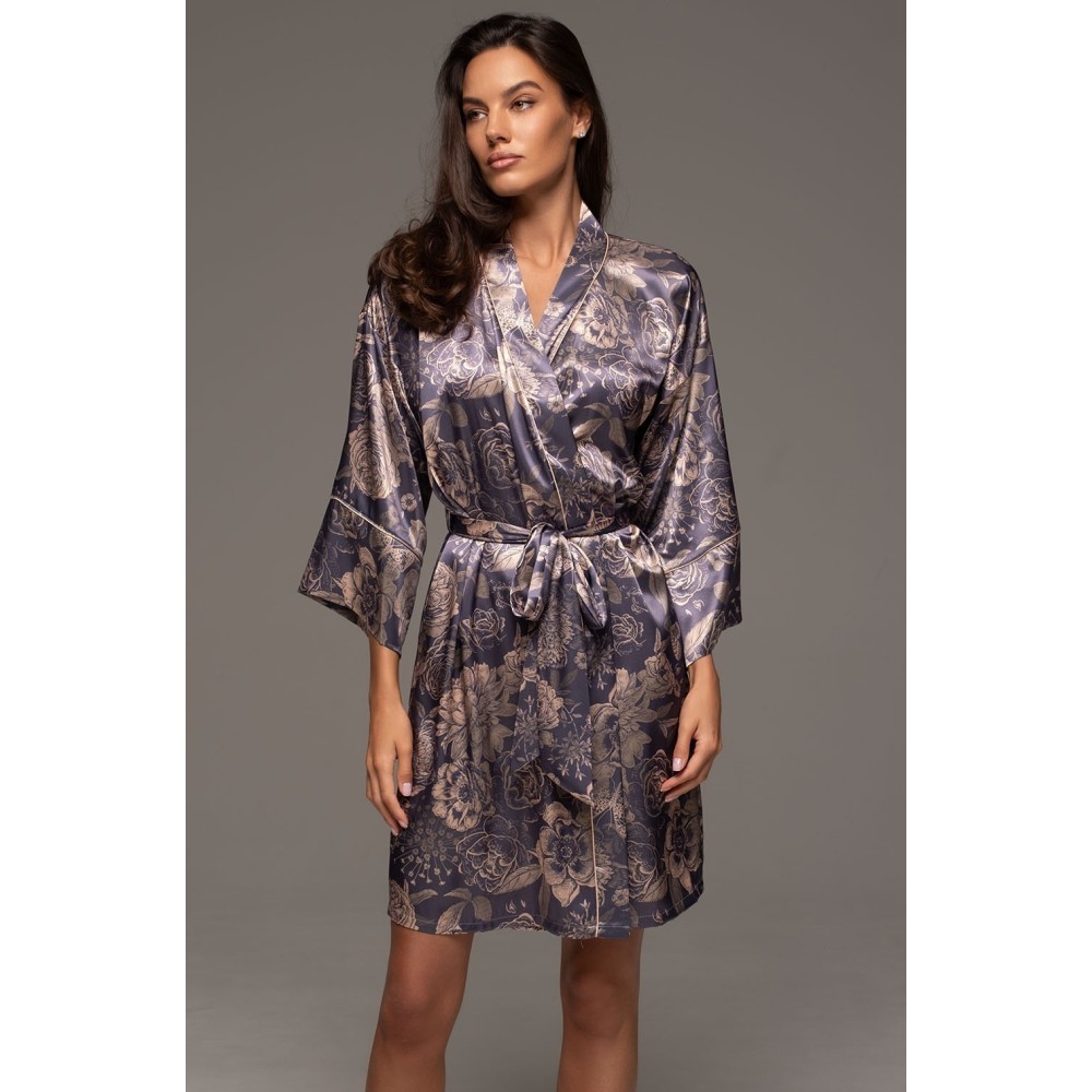 Жіночий шовковийхалат-кімоно Джаконда 4683 від Mia-Amore виконаний з шовкового полотна, щопринтує. Борта халата і притачені широкі манжети на рукавах прикрашені тонкимиоднотонними кантами в колір малюнка. У бічних швах оброблено кишені. Укомплекті йде пояс для регулювання лінії талії. Модель виглядає дуже розкішно івідмінно підійде як подарунок.Склад 70%натуральний шовк, 25% поліестер, 5% еластан.