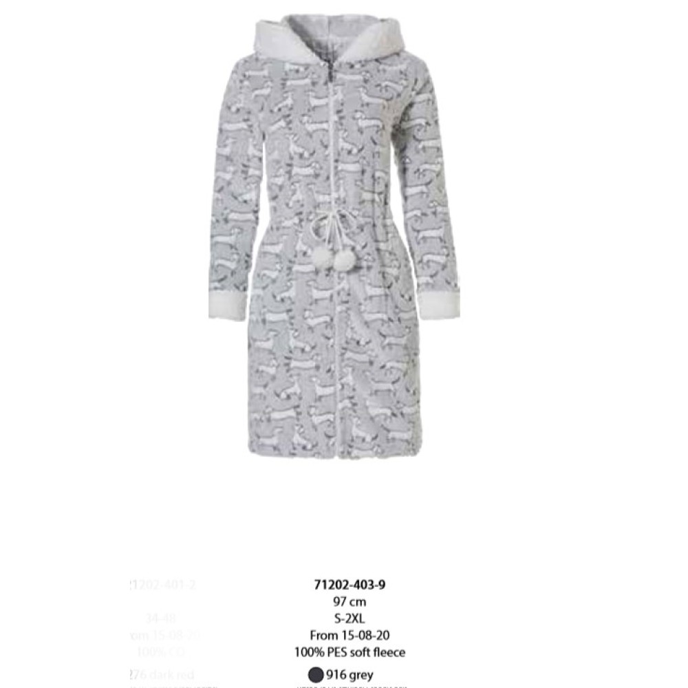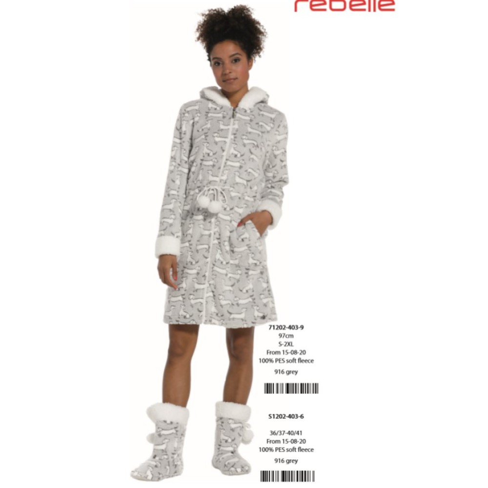 Теплий жіночий халат з капюшоном "Rebellе" 71202-403-9. Виріб виготовлено з дуже м'якого флісу і застібається на блискавку. За допомогою кулиски можна регулювати ширину талії. З боків розташовані кишені. Склад: 100% поліестер.
