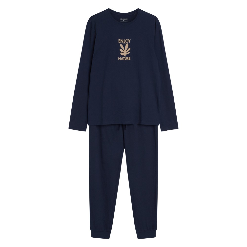 Зручна чоловіча бавовняна піжама з довгим рукавом та кишенями. Має стильний принт і забезпечує комфорт у щоденному використанні.