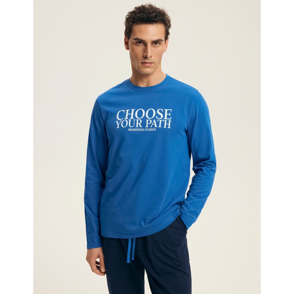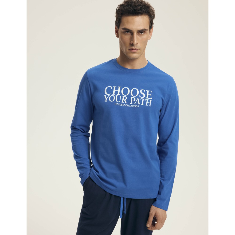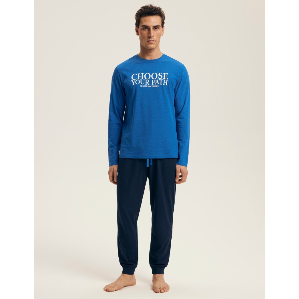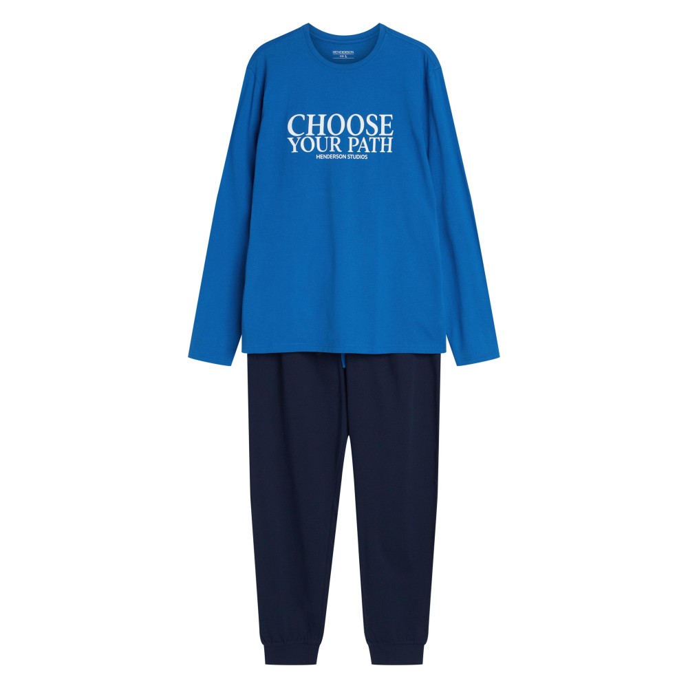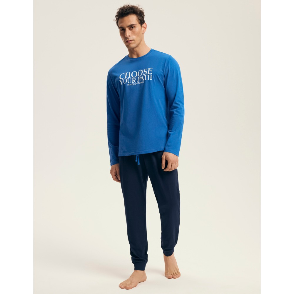 Стильная мужская пижама LOOP 43472 AW25 от Henderson – идеальное сочетание натурального хлопка, удобного кроя и мотивирующего принта. Комфортный сон и заряд хорошего настроения на новый день.