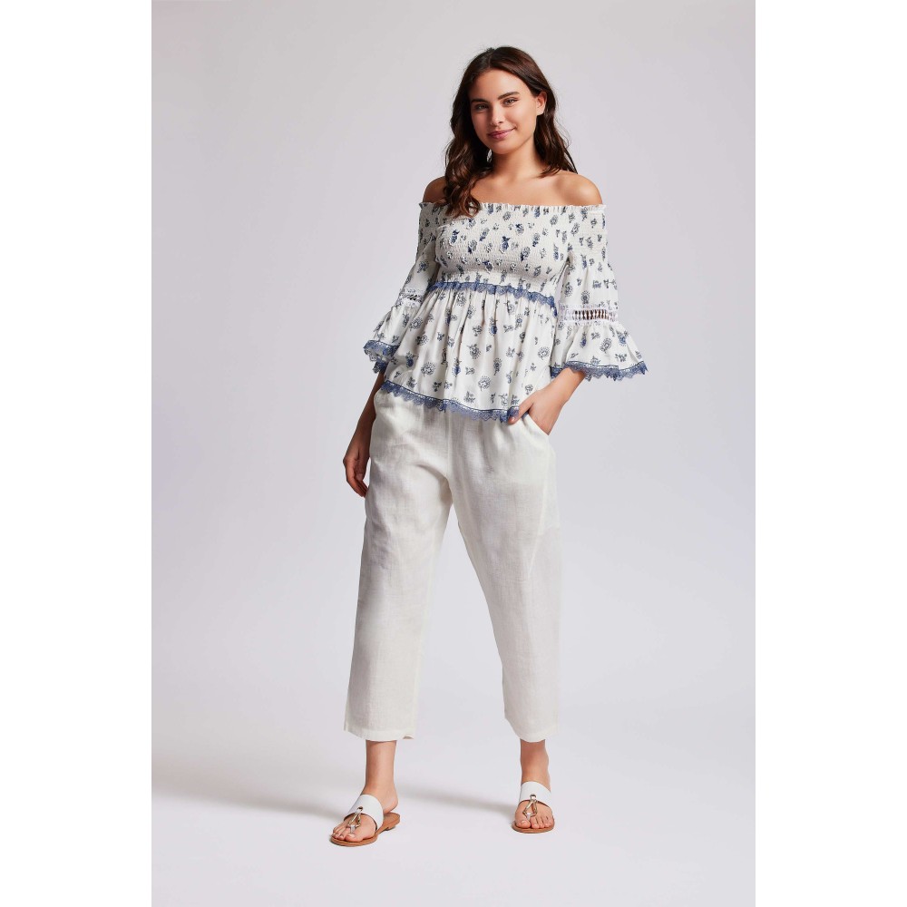 Комплект топ із штанами Iconique IC24-036/IC24-032 з дужем'якого модалу. Топ у богемному стилі має рукави-дзвіночки та бюст зоздобленням А-силуету. Штани прямого крою, з боків розташовані кишені.Склад: ТОП Модал 100%, ШТАНИ Віскоза 60%, льон 40%.