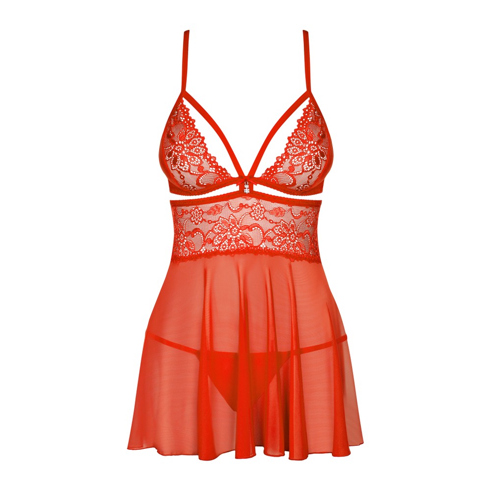 Вы ищете 100% сексуальное и максимально чувственное нижнее белье? Ознакомьтесь с нашим прекрасным предложением! Красная куколка чрезвычайно женственного кроя заставит вас почувствовать себя по-настоящему особенной. А благодаря восхитительной нежности материала, это будет... просто чудесно. Подробности: красивая куколка из очень приятной на ощупь сетки соблазнительное сочетание мягкого бюстгальтера и воздушного низа футболки регулируемые бретели, которые сексуально перекрещиваются на спине. резинки на декольте – привлекают взгляд к красиво выделенной груди блестящий кулон под грудью кружевные украшения, добавляющие очарования в комплект входит бэбидолл и стринги нежный, прекрасно тянущийся материал (90% полиамид, 10% эластан)