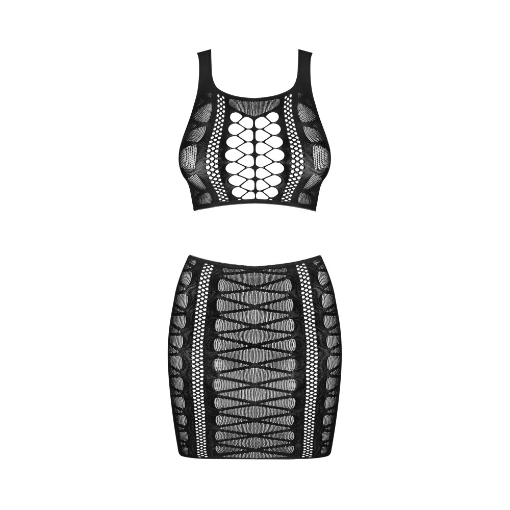 Наближається довгоочікувана романтична зустріч? Хочете здивувати свою другу половинку оригінальним, дуже сексуальним стилем? Набір K102 створений саме для таких випадків! Верх і спідниця прикрашені тонкими візерунками, створеними за допомогою матеріалу інтригуючого крою та дрібної сітки. Комплект ідеально прилягає до тіла, підкреслюючи всі переваги. Зважтеся на трохи пікантного задоволення, і ви точно не пошкодуєте, подивіться на подробиці: