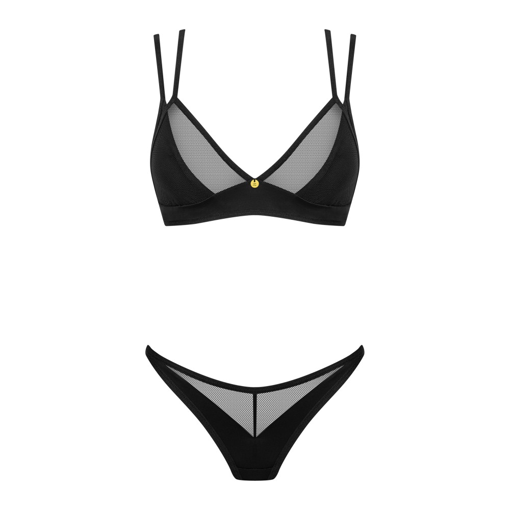 Хотите удивить свою вторую половинку минималистичным нижним бельем, предлагающим заманчивые решения? Заставьте свое лицо сиять и создайте незабываемый дуэт с набором Nesari! Со вкусом подобранные материалы, сексуальные бретели и гладкий материал идеально сядут по фигуре, подчеркнут все достоинства и удивят своей мягкостью. Наслаждайтесь моментами, полными близости и вкусите неповторимое удовольствие. Узнайте его секрет: Комплект Nesari черного цвета - состоит из бюстгальтера и стрингов. регулируемые бретели и многоступенчатая застежка – идеальная посадка сетка и однородная ткань – заманчивое сочетание золотой кулон – блестящее украшение гибкий материал – гарантия комфорта в любой ситуации (85% полиамид, 15% эластан)