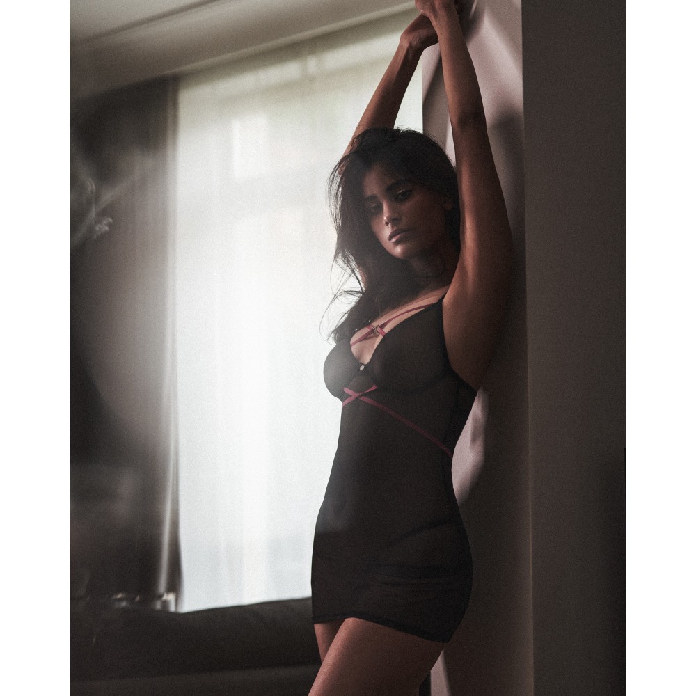 Прозрачная ночная рубашка Чувственная классика в современном подходе? Убедитесь сами, что платье Novenes сочетает в себе обе эти особенности. Гладкая ткань соблазнительно прозрачна и тонко подчеркивает женскую фигуру. Приталенный крой разнообразен фиолетовыми полосками между чашками и на талии. Комплект дополняется стрингами в тон. В этом черном белье вы заново откроете для себя удовольствие соблазнения. черное ночное платье со стрингами косточки в чашках фиолетовые полосы многоступенчатая застежка на спине и регулируемые бретели. прозрачный материал блестящее украшение с черными цирконами серебряный кулон с логотипом разработан в ЕС 94% полиамид, 6% эластан.