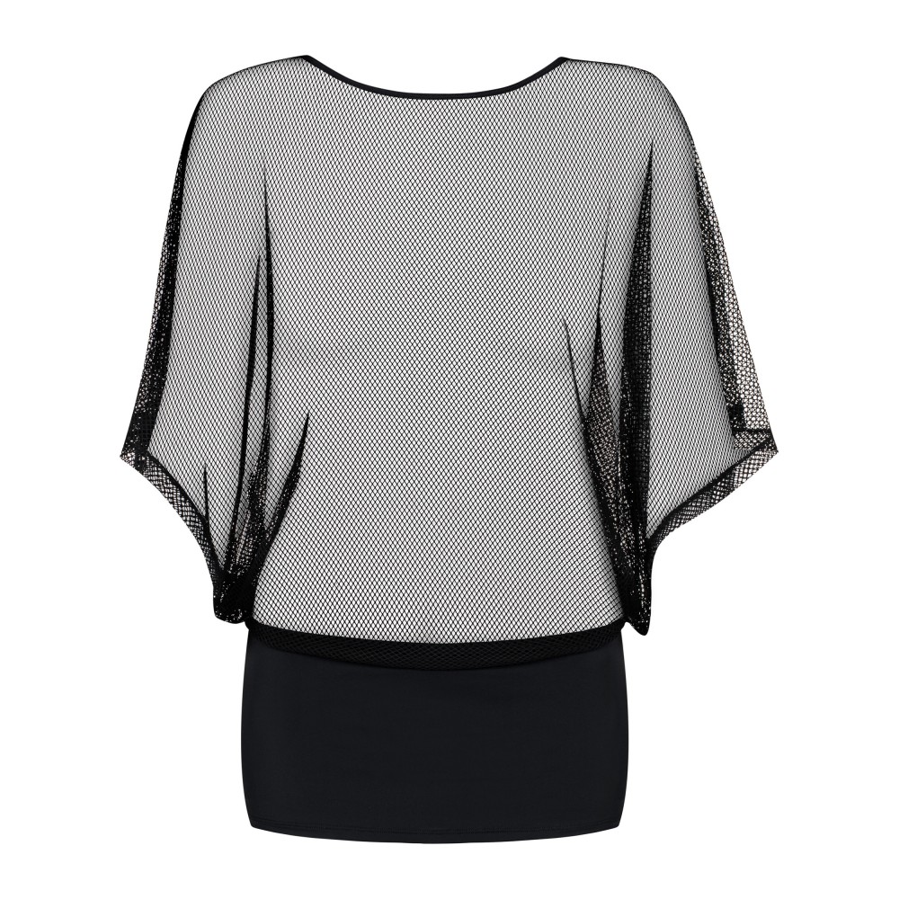 Фривольне, сексуальне плаття! топ і міні-спідниця в одну сітчасту верхню частину з вільними широкими рукавами, необтягуючий низ з приємної, щільної та еластичної тканини, спинка ідентична переду - в комплекті сексуальні стрінги, приємна до тіла тканина (90% поліамід, 10% еластан)