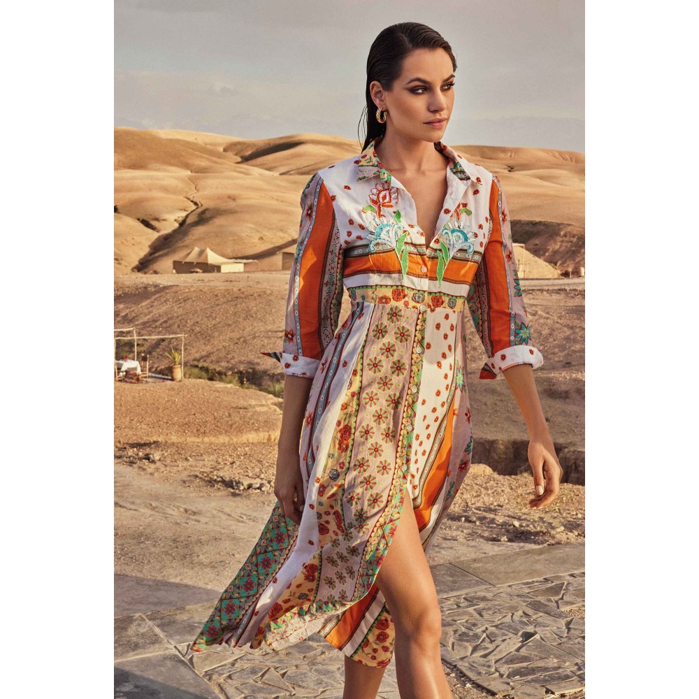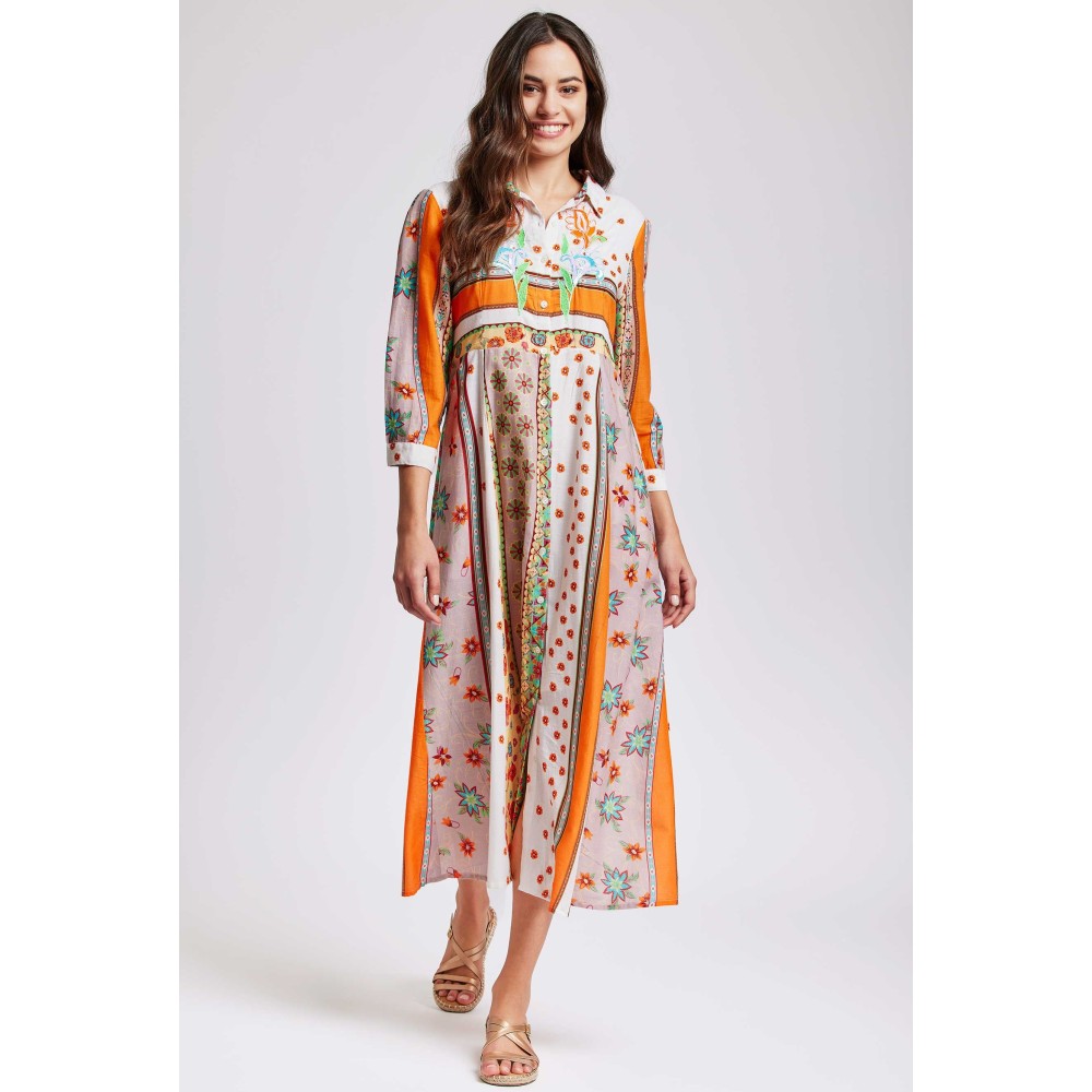 Стильне літнє плаття David DB24-026 з ніжної бавовни.Довжина максі, рукав 3/4, комір сорочкового типу. Сукня застібається нагудзики.Склад: 100% бавовна.