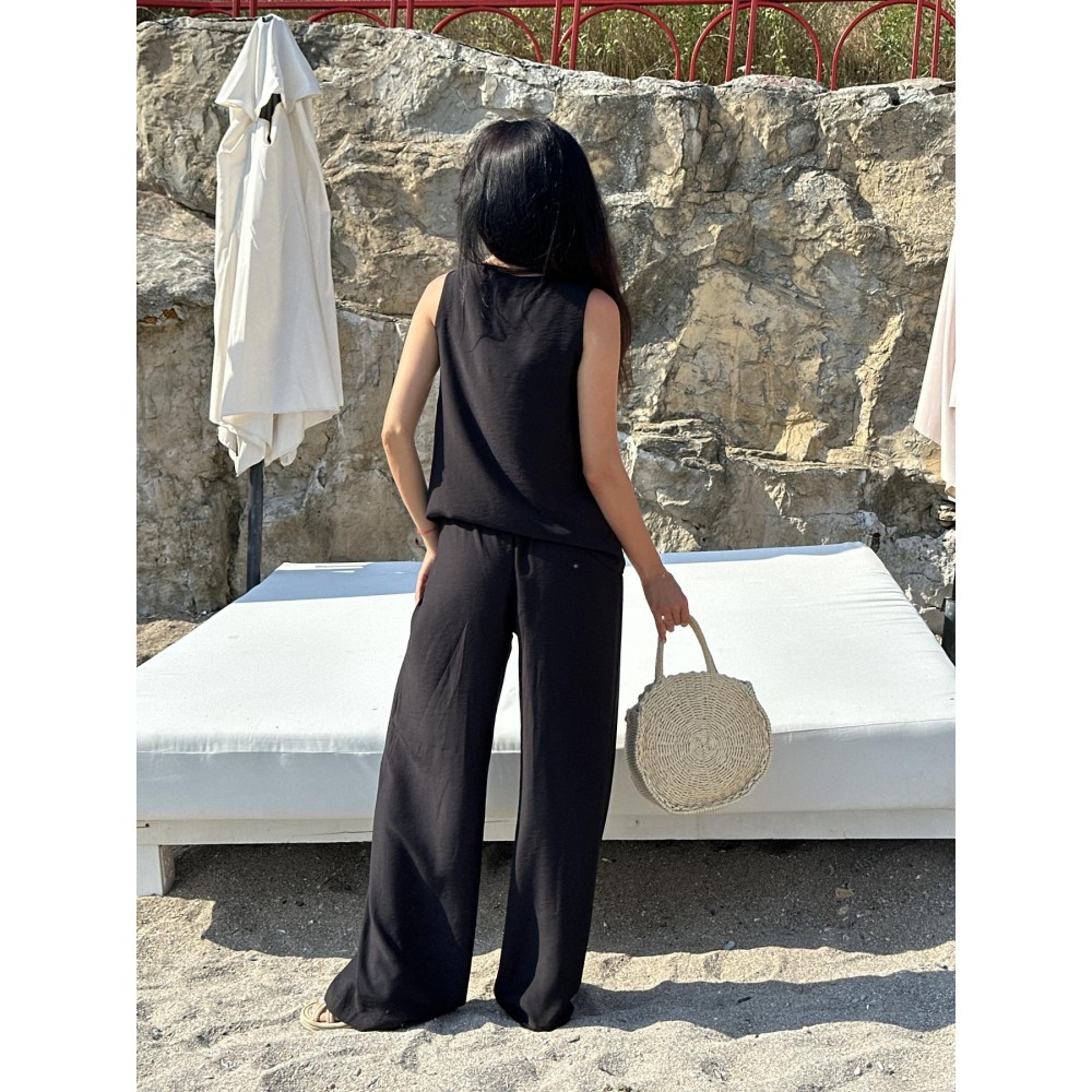 Чорні штани чудово міксуються з майками, топами, лляними сорочками чи блузами — створюючи стильний лук на кожен день. Незамінна річ у літньому гардеробі.