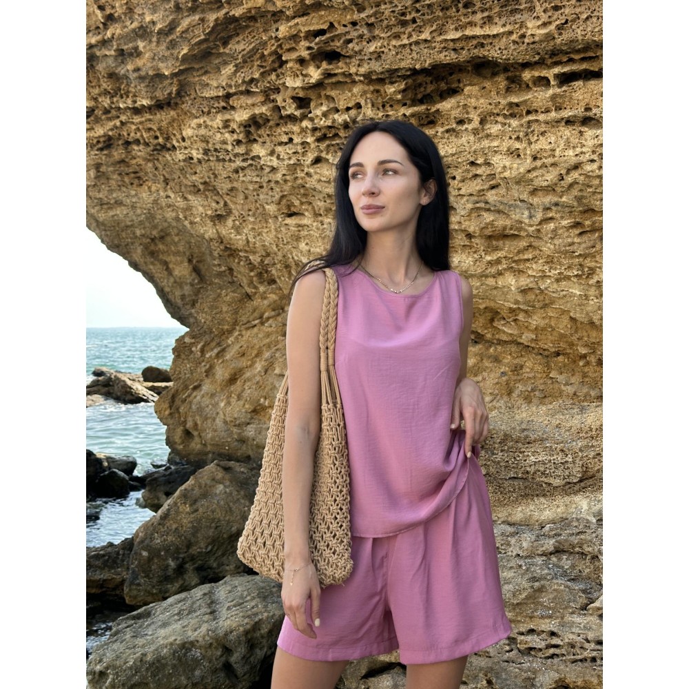 Вільний крій не сковує рухів і дарує відчуття легкості протягом усього дня. Майка чудово поєднується з штанами, шортами або спідницею — створюючи універсальні образи на кожен день, для відпочинку, подорожі або літньої вечірки.