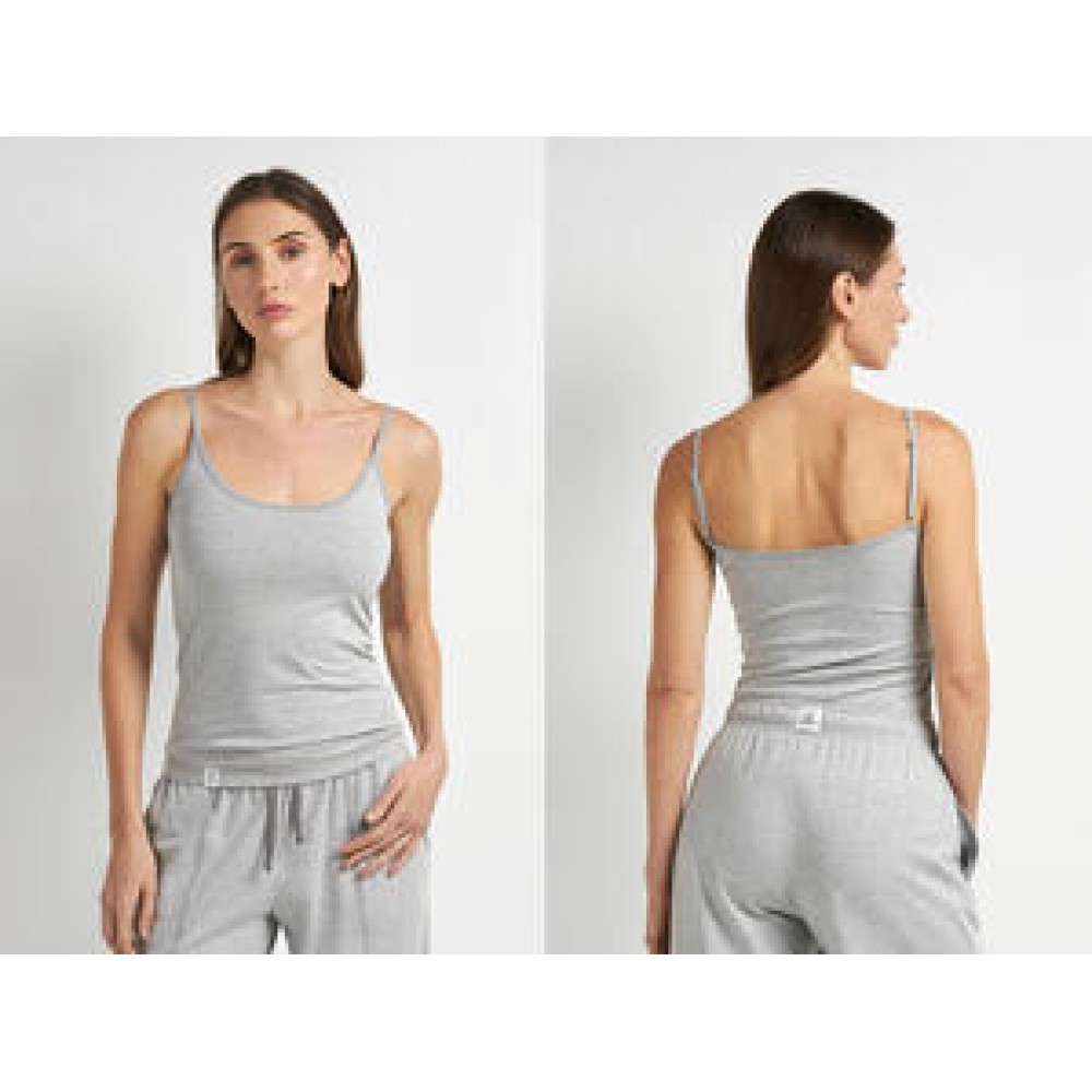 Майка жіноча торгової марки Ellen з базової колекції на тонких бретелях регульованих виконана з якісної бавовни сірого кольору;