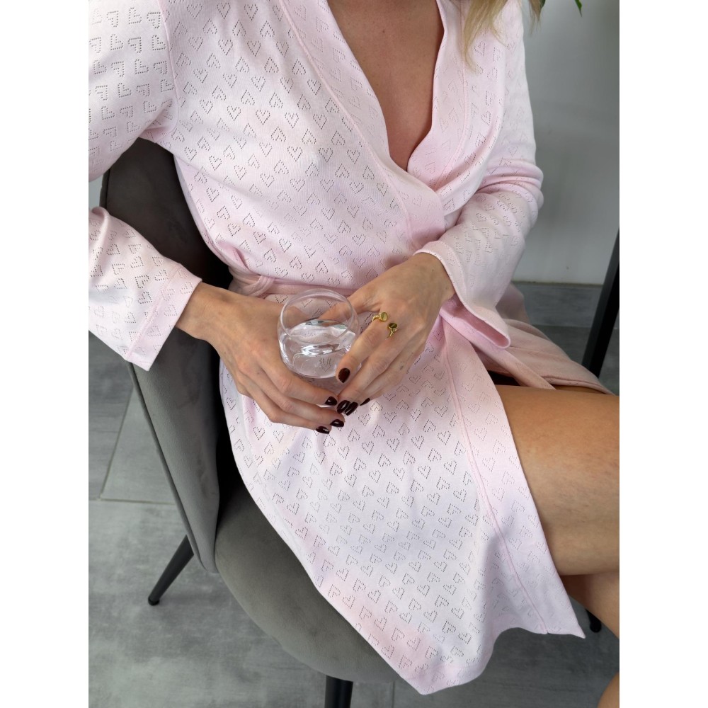 Ніжно-рожевий відтінок із дрібними сердечками, витончений пробитий візерунок на тканині — кожна деталь створена для тих, хто цінує комфорт, турботу та естетику в щоденних ритуалах.