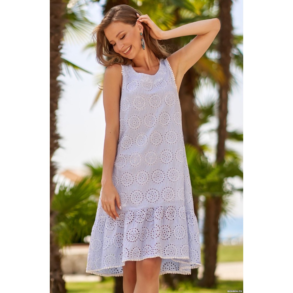 Пляжна сукня "Домінікана" 1405 від Mia-Amore середньої довжини и зав'язкою на спінці. Виконання з тканини "шиття". Довжина спереду немного Коротше чем ззаді. На підкладці. Склад 100% бавовна