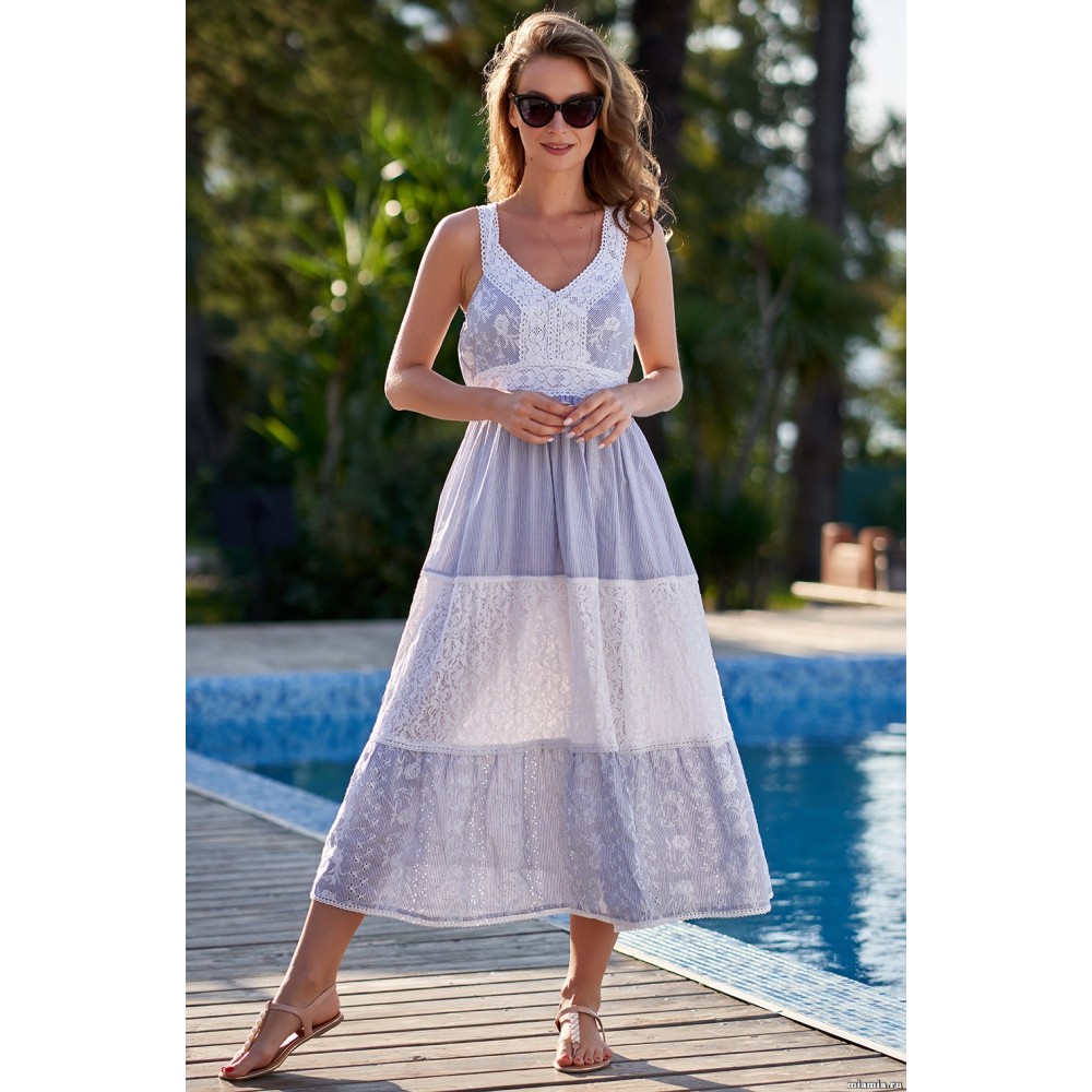 Пляжна сукня на підкладці "Домінікана" 1409 від Mia-Amore виконана з хлопкогого полотна. Широкі бретелі з в'язаного мережива. Сарафан на підкладці з тонкої бавовни. Склад: 100% бавовна.