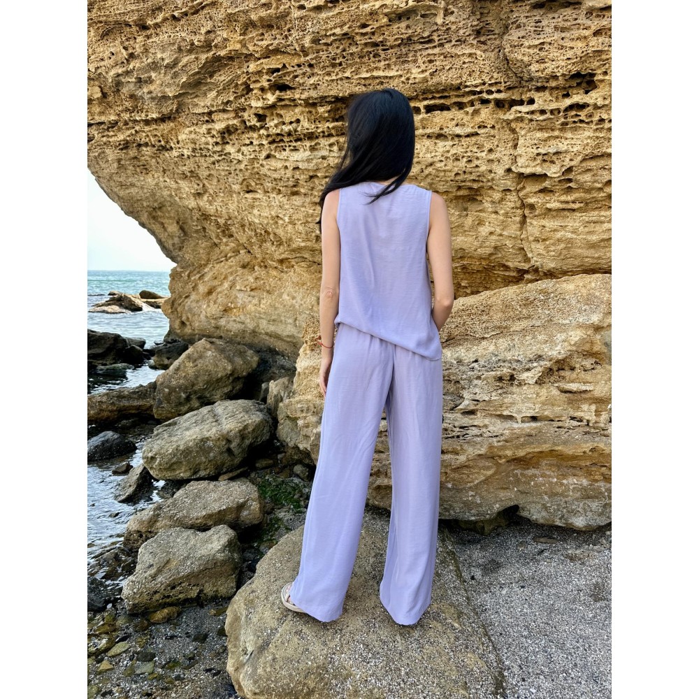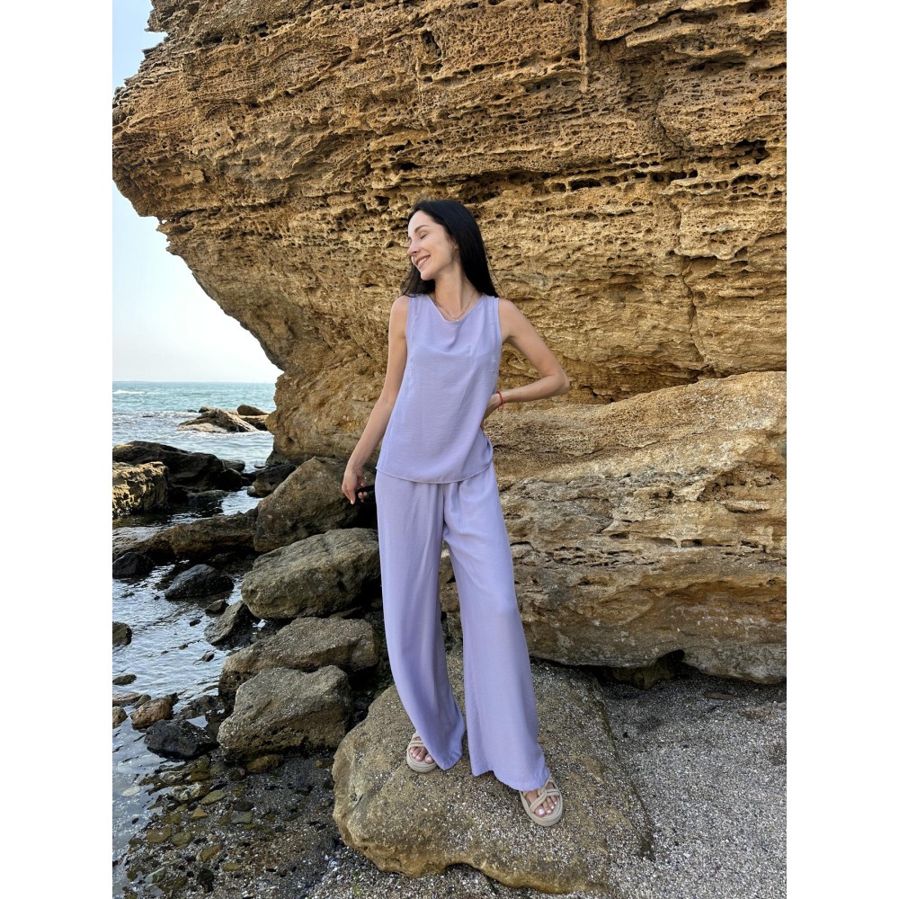Цей комплект — універсальний: для відпочинку на морі, міських прогулянок, поїздок або затишних вечорів. Майку та штани легко комбінувати з іншими речами гардеробу.