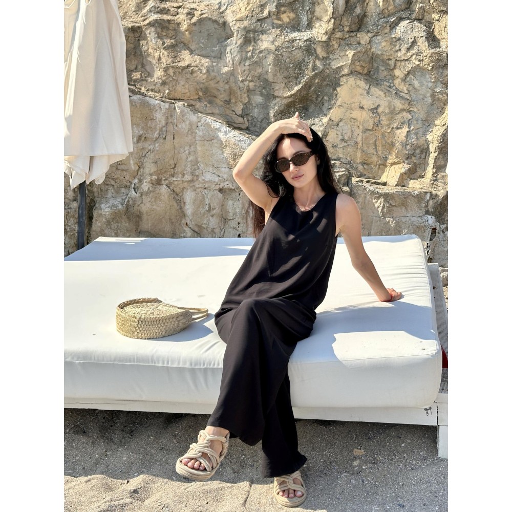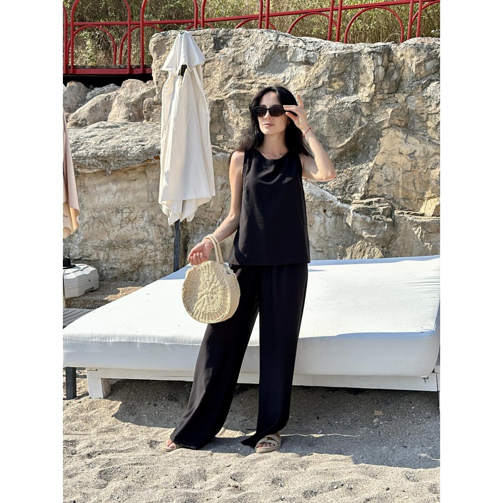 Чорний колір додає образу глибини та елегантності — такий комплект доречний і для прогулянки біля моря, і для вечірнього виходу, і для подорожі. Його легко поєднати з босоніжками, кедами або сандалями.