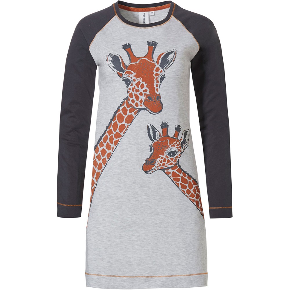 Домашня туніка-сукня "Rebelle" 11212-432-2 з м'якої бавовни з довгим рукавом. Туніка дуже м'яка та приємна до тіла, вільного крою, має веселий та незвичайний принт спереду виробу з жирафами.Склад: 98% бавовна, 2% поліестер.