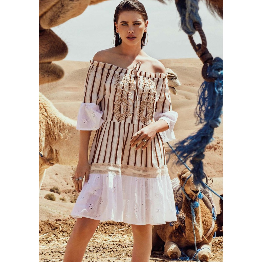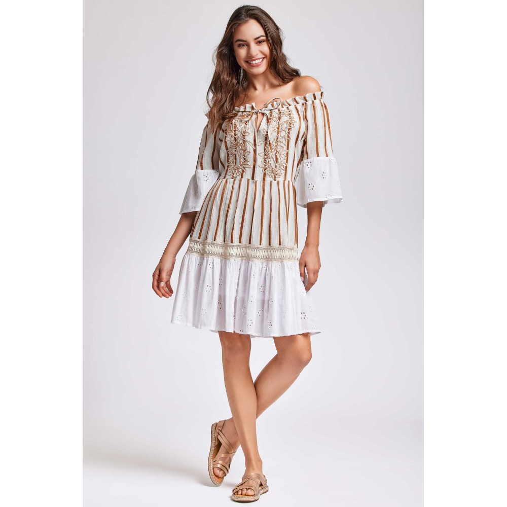 Туніка-сукня David DB24-015 -ідеальний вибір для модного літнього образу. Туніка до колін із високоякісної бавовни, Рукава 3/4. Склад: 100% бавовна.