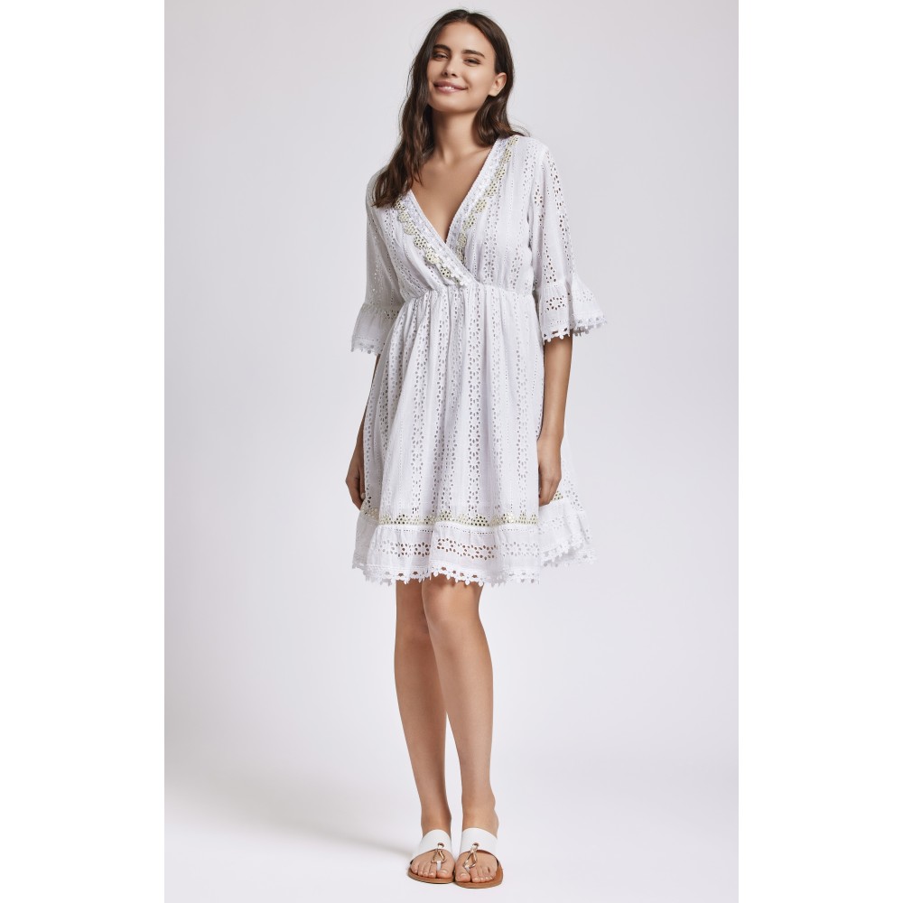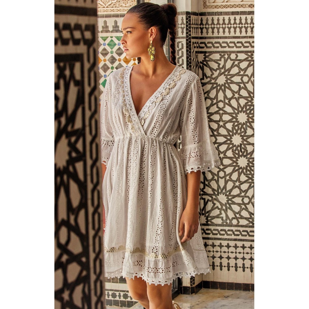 Жіночатуніка-сукня Iconique IC24-002 довга до колін виготовлена ​​з високоякісноїперфорованої бавовняної тканини. Довжина рукавів 3/4. Склад: 100%бавовна.