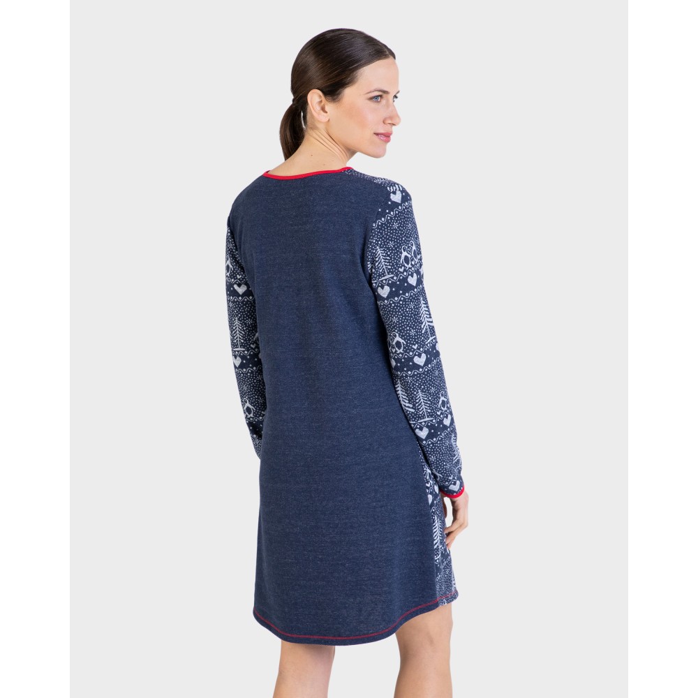 Жіночатуніка-сукня Massana L737232 виробництво Іспанія. Туніка до колін з довгимирукавами, Краї рукавів та горловина декорована червоним кантом.Склад: 54%поліестер, 37% бавовна, 9% віскоза.